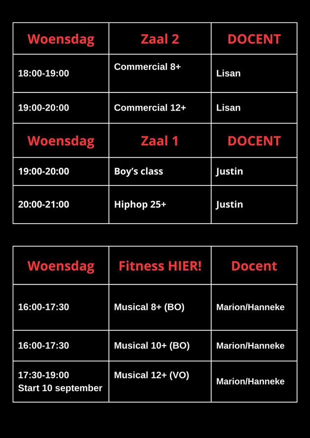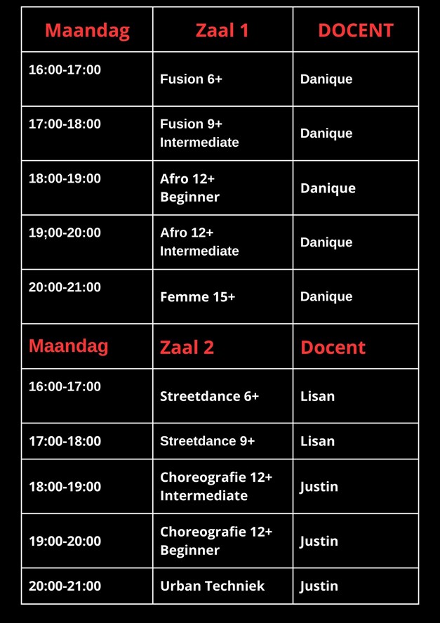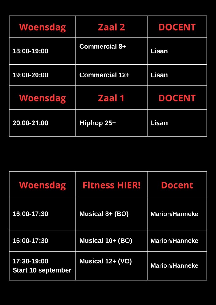 Alle danslessen vinden aan de Dolderweg plaats, behalve de musical lessen, deze volg je op de locatie bij Fitness HIER! aan de Roomweg in Tuk